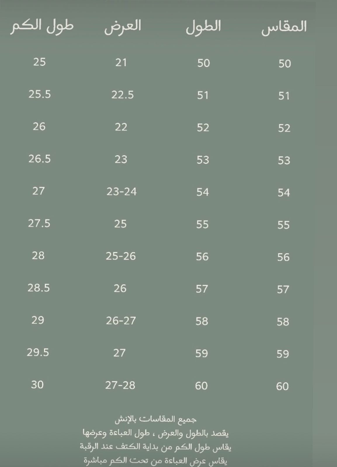 لمساعدتك في اختيار المقاس الأنسب، اطلعي على صورة القياسات المرفقة للتأكد من اختيار المقاس المناسب لك بكل سهولة.