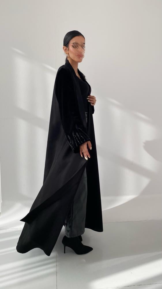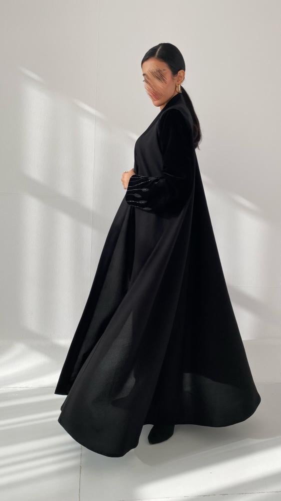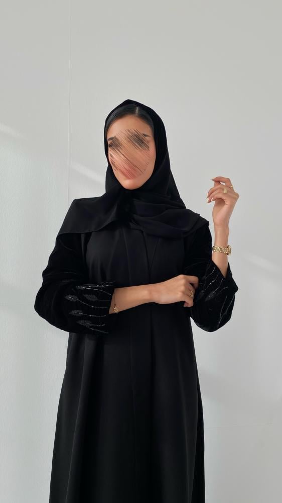 - الخامة: عباية شتويه كريب كتان بأكمام مخمل مطرزه تطريز يدوي .